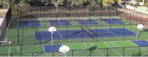 We enjoy four dedicated pickleball courts with permanent nets and four pickleball courts marked off on the tennis court for use with portable nets, for a total of 8 courts. Eastview Park was opened in 2019 through the partnership of the Town of Coaldale and the Kinsmen Club of Coaldale. The facility is located at 1825 10th Street, Coaldale. The courts have wind screens on two sides and a plexipave (smooth concrete) finish with offset colors. Weather depending, our outdoor playing season usually runs from April through October.