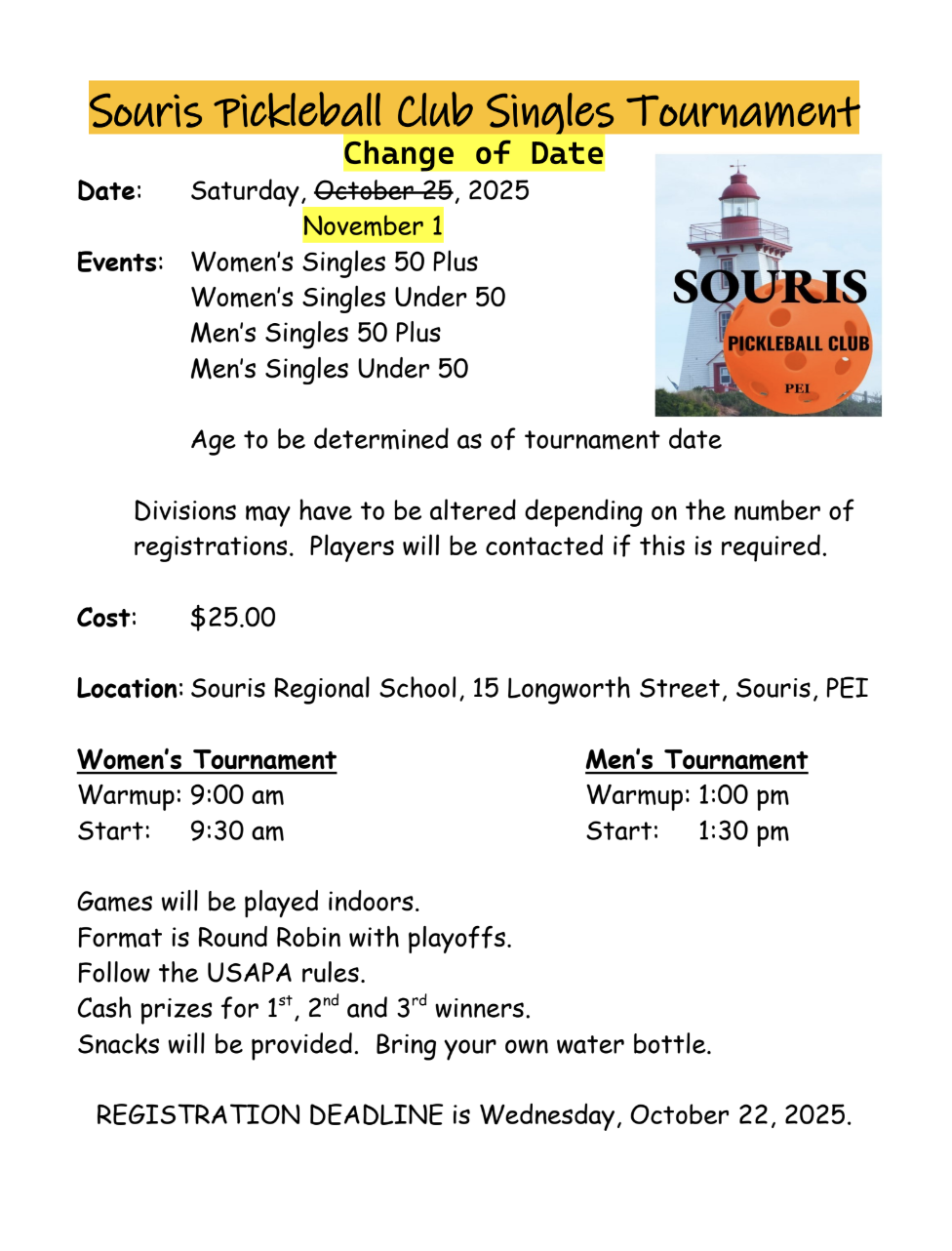 2023 PEI Pickleball ÎPÉ Fall Tournament