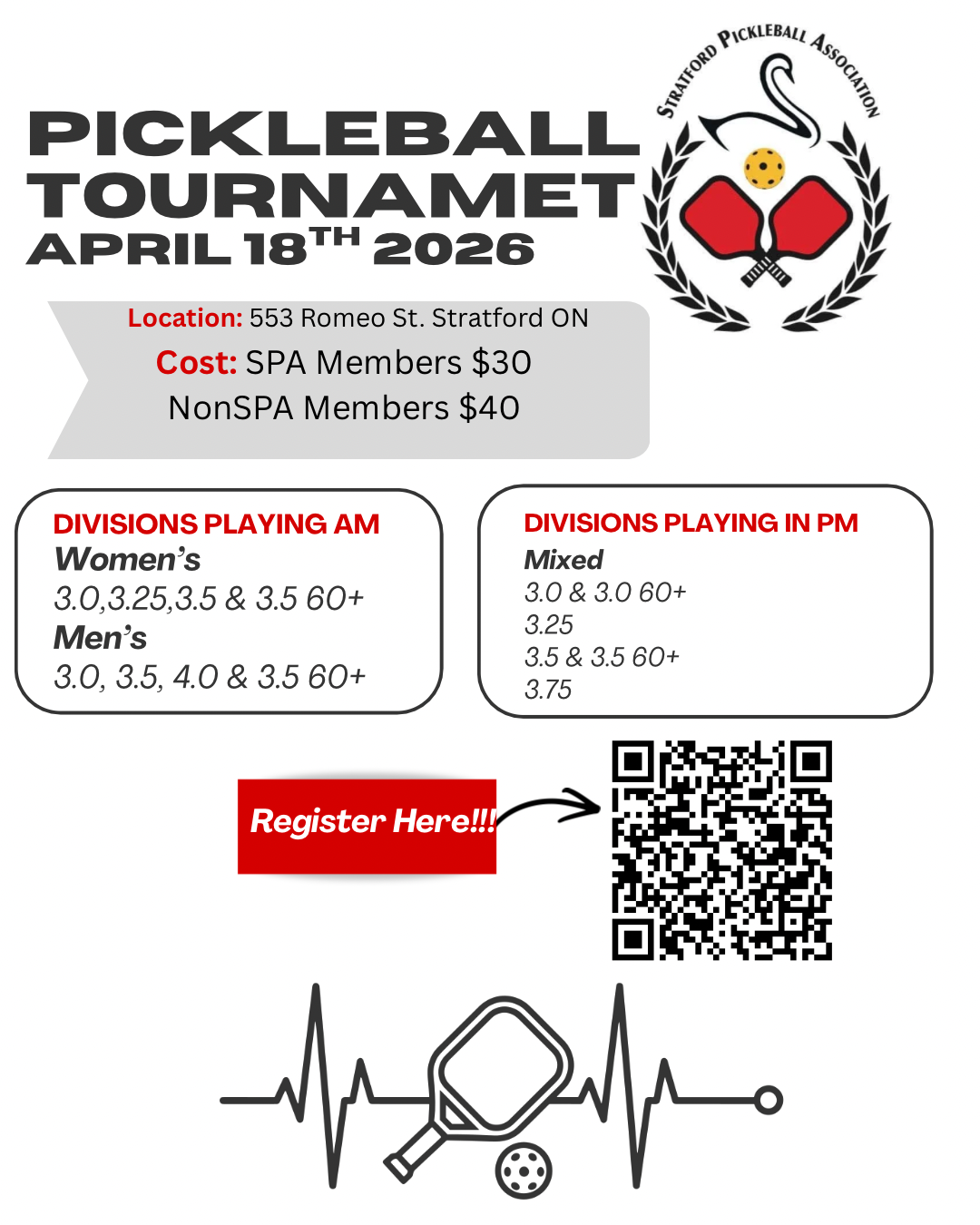 Confirmation ListTotal Registrants - 0 View Payment MethodsOnline * Small processing fee applies Prices & DeadlinesRegular deadline: April 12th, 2026 11:59pm (Eastern Time)Registration OpenedRegistration FeesPrice $40.00 per entryAll prices in CAD $