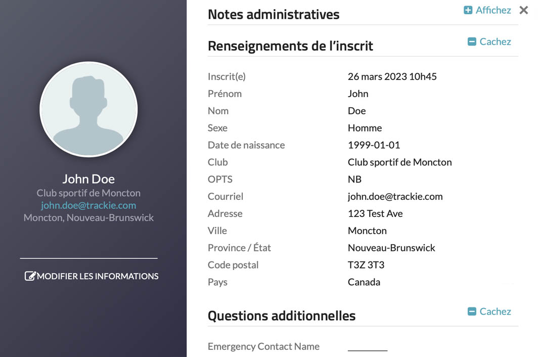 WEn cliquant sur ce lien, vous pourrez modifier vos informations. Veuillez noter que pour certains événements et clubs, la modification des informations peut être désactivée ou soumise à une date limite. Si vous ne parvenez pas à modifier vos informations, il est recommandé de contacter directement l’événement ou le club concerné.