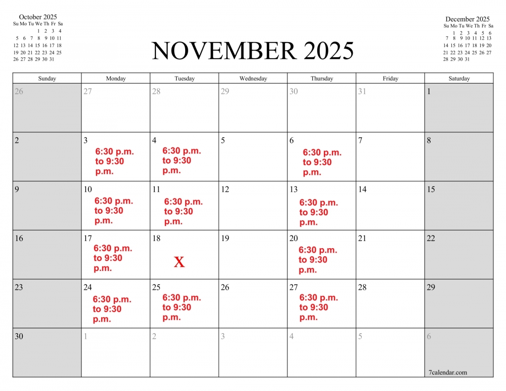Doors manned from 6:15 p.m. to 6:30 p.m.