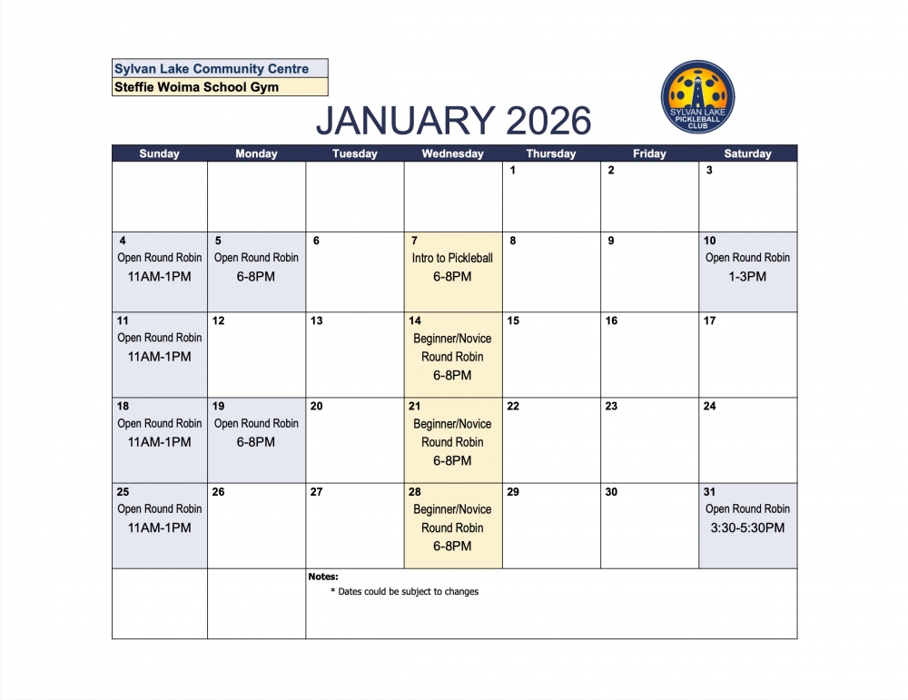 The Sylvan Lake Pickleball Club is excited to welcome you to our Open Round Robin sessions!