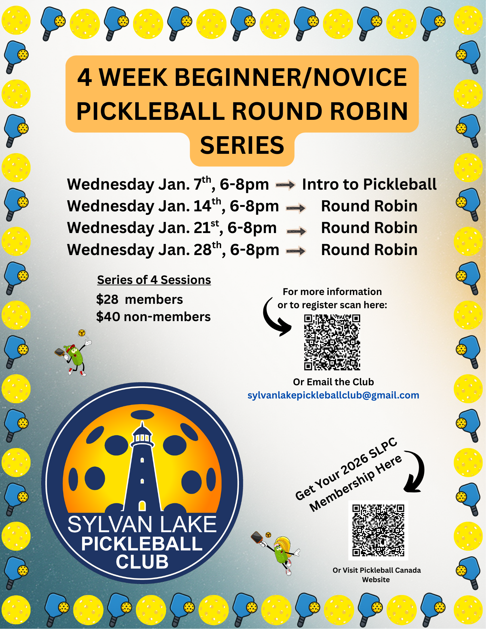 The Sylvan Lake Pickleball Club is excited to welcome you to our Open Round Robin sessions!