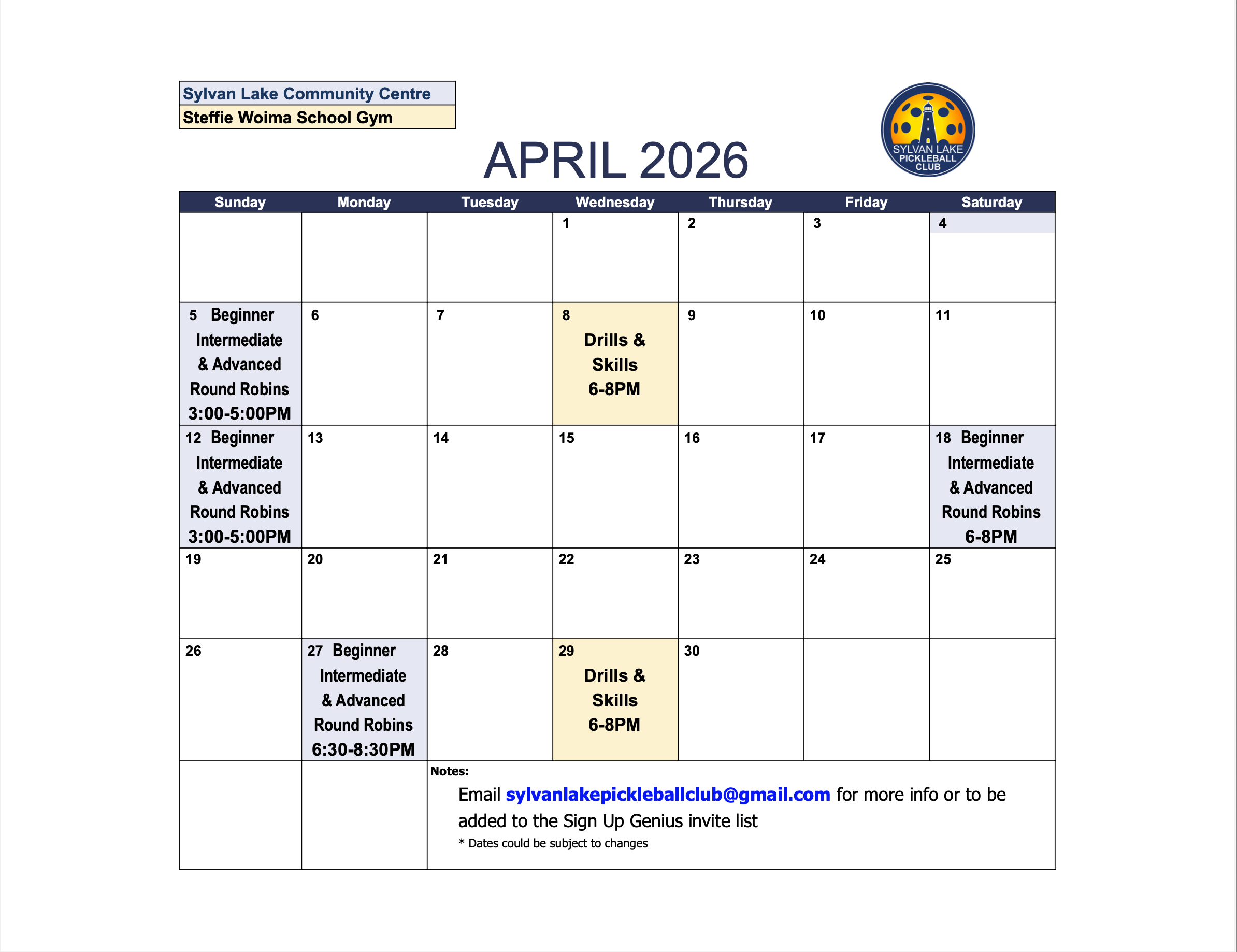 📍Location: Steffie Woima Elementary School -  Gymnasium                                                                                                                                                 4720 45 Ave, Sylvan Lake, AB
