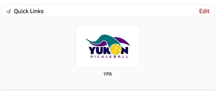 Quick Links are located on the page that comes up when you log into Pickleball Canada, this is called your Dashboard page. You can also navigate to it by pressing the Dashboard icon on the Pickleball Canada Menu on the left-hand side of the screen.
