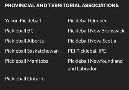 5. Scroll all the way to the bottom and you will see the Provincial an Territorial Associations, then click on Yukon Pickleball.