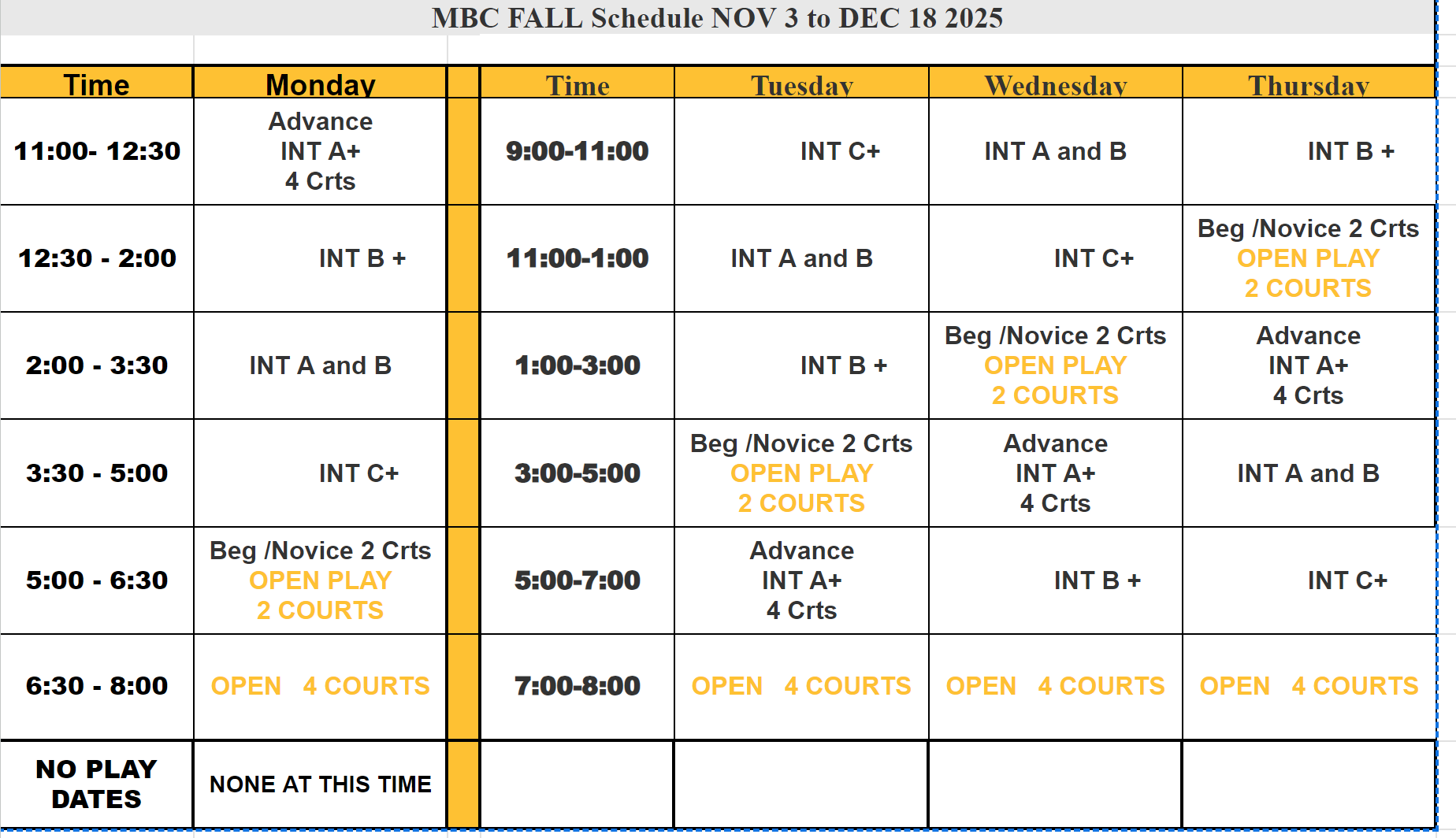- Members are to ensure space is available in the club session for their guests. More than two members waiting, guests will have to try another time. The schedule is shown on the website to identify the appropriate time for guests to play with members at similar skill levels. If the guest's skill level is below that of the group play that they attend, the Team Lead will ask the guest to play in the appropriate time slot for the guest's skill level. This is at the discretion of the Team Lead.