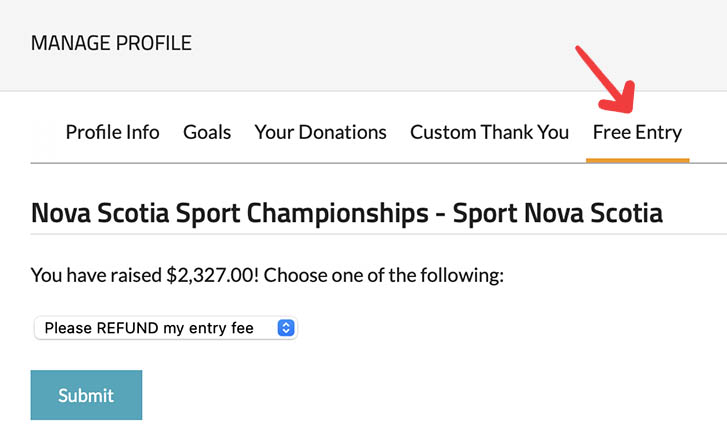Your personalized pledge page will display a list of all the events you've registered for that are accepting donations, along with the total amount you've raised so far. To edit and manage your page, simply click on the "Manage Profile" button.